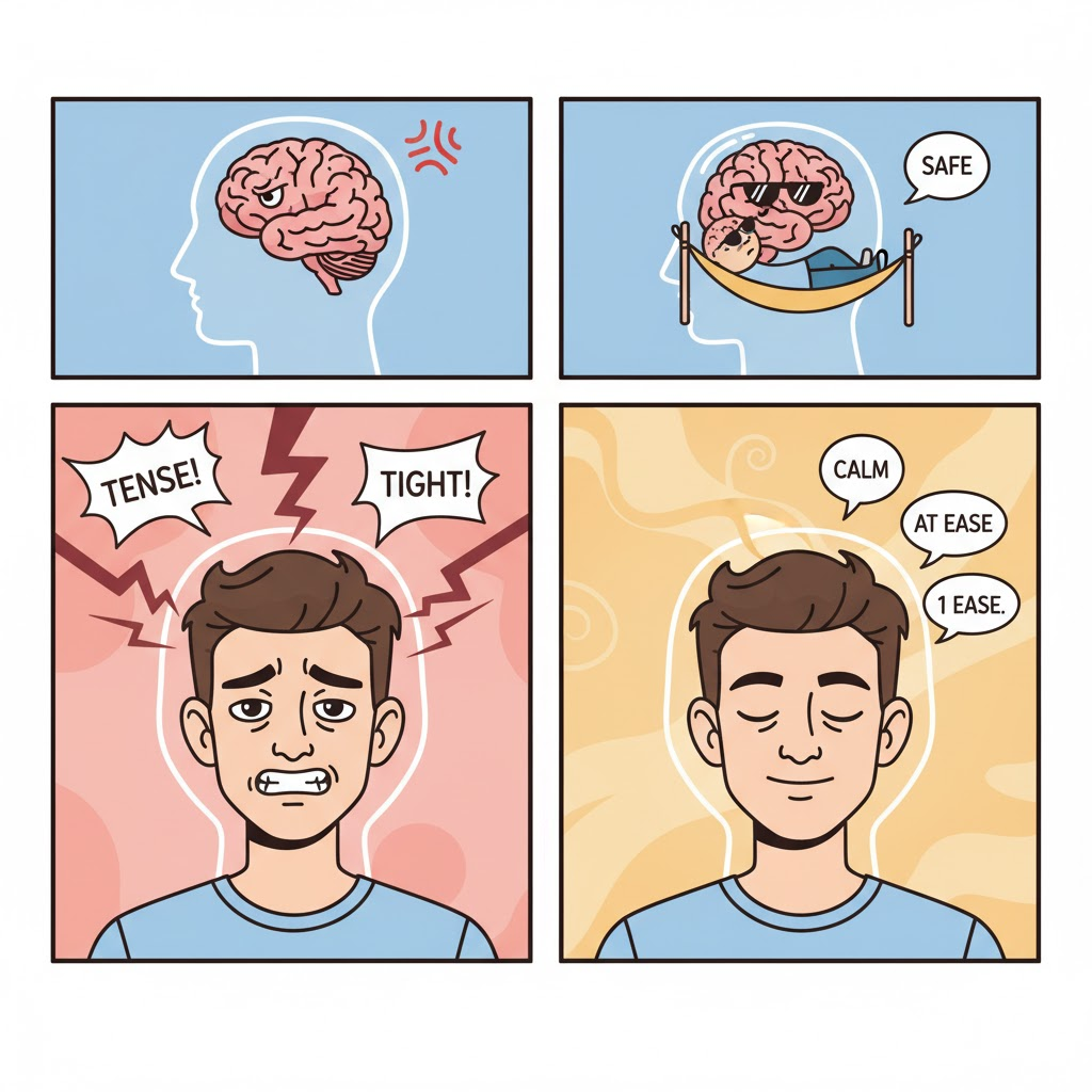 ✅ 즉, 몸을 이완시키면 뇌는 “지금은 안전하다.”고 판단해, 마음도 진정되는 것입니다.