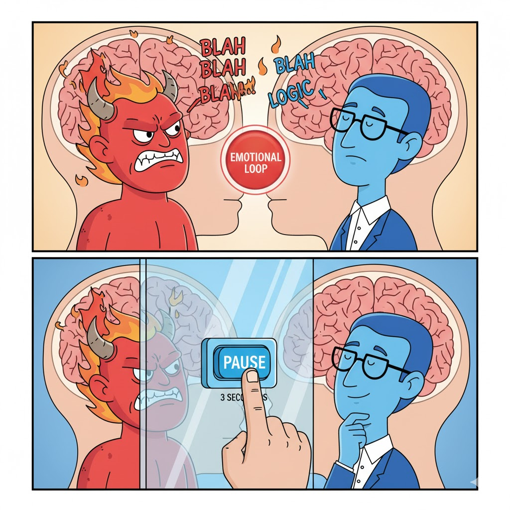 분노가 올라올 때 즉각적인 반응을 멈추고, 마음속으로 또는 입 밖으로 **👉 “지금 루프에 들어갔구나”**라고 인식하세요.